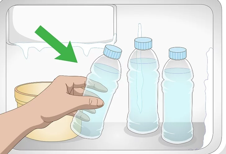 Tamamen donana kadar şişeleri birkaç saat buzlukta bekletin. Su, buza döndüğünde şişeleri çıkarın ve kenara koyun.